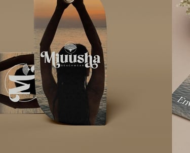 Este increíble trabajo lo realizamos para MIUUSHA BEACHWEAR, una tienda de vestidos de baño y accesorios de playa, donde combinamos elementos naturales y minimalistas para crear una identidad que refleja frescura y elegancia.